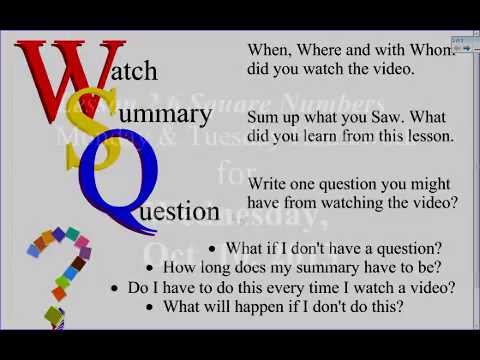 Ever heard of a square meal, or a square deal, well here's the real thing: Square Numbers. You know them 2x2= ? , 5x5= ? , or 10x10= ? . They are the products of two factors, but really it is one number times itself. Watch the video and first things first write WSQ at the top of your paper.